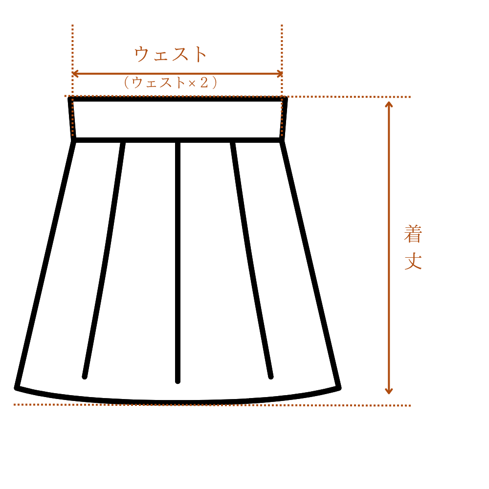 ウエスト:ウエスト部分の端から端までを直線で測り、その長さを2倍した数値です。