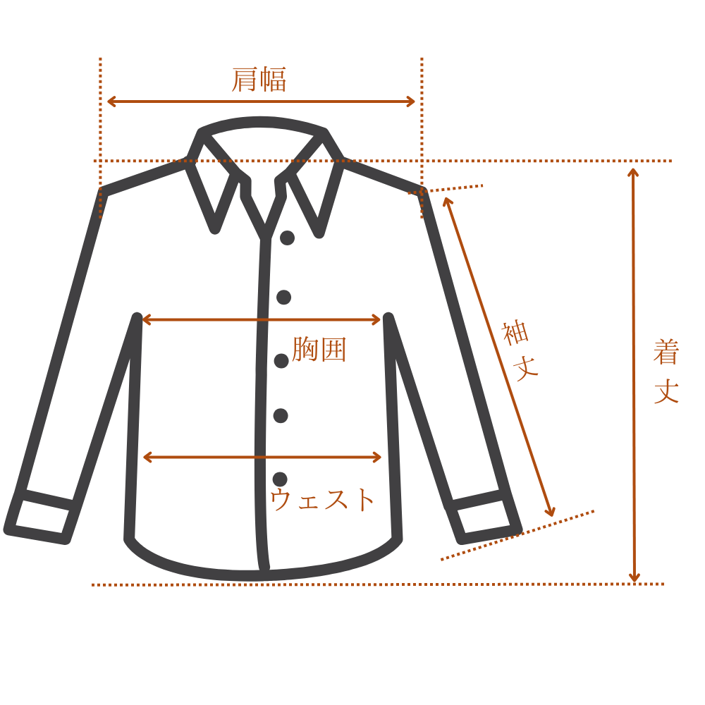 袖丈:肩先から袖口までの長さです。