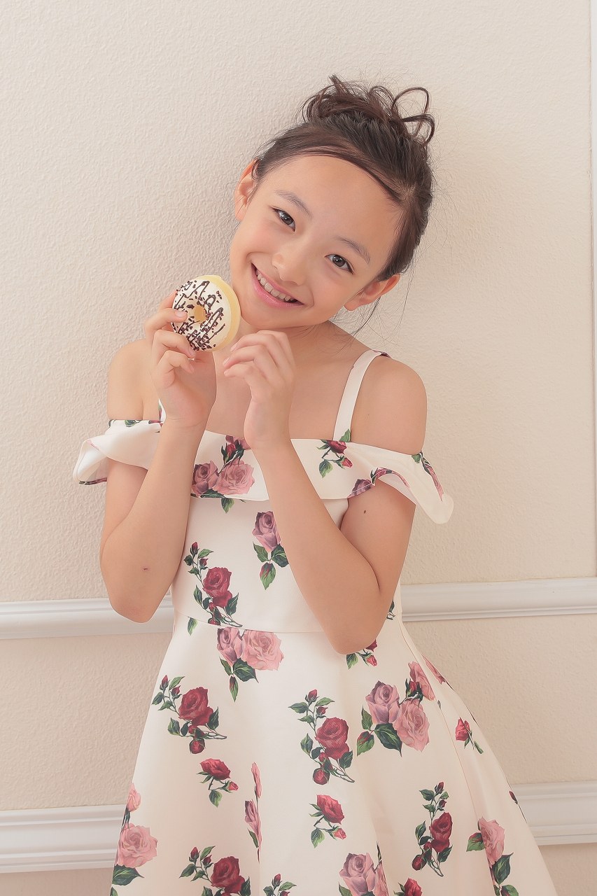 デコルテ回りをフリルに、オフショル風のデザインは大人に憧れる女の子のハートを掴み普段よりちょっぴりお姉さん気分に。