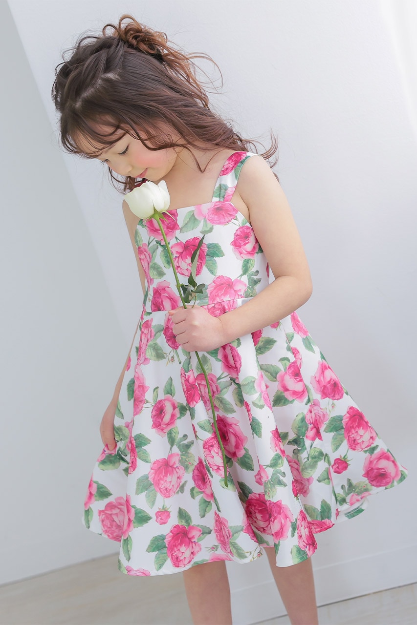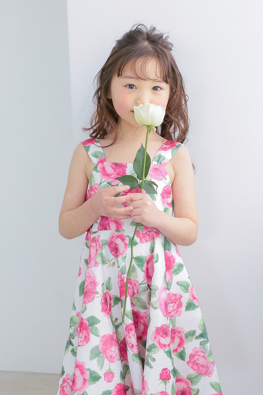 白地にピンクの花柄が華やかさを演出し、子供らしいデザイン。